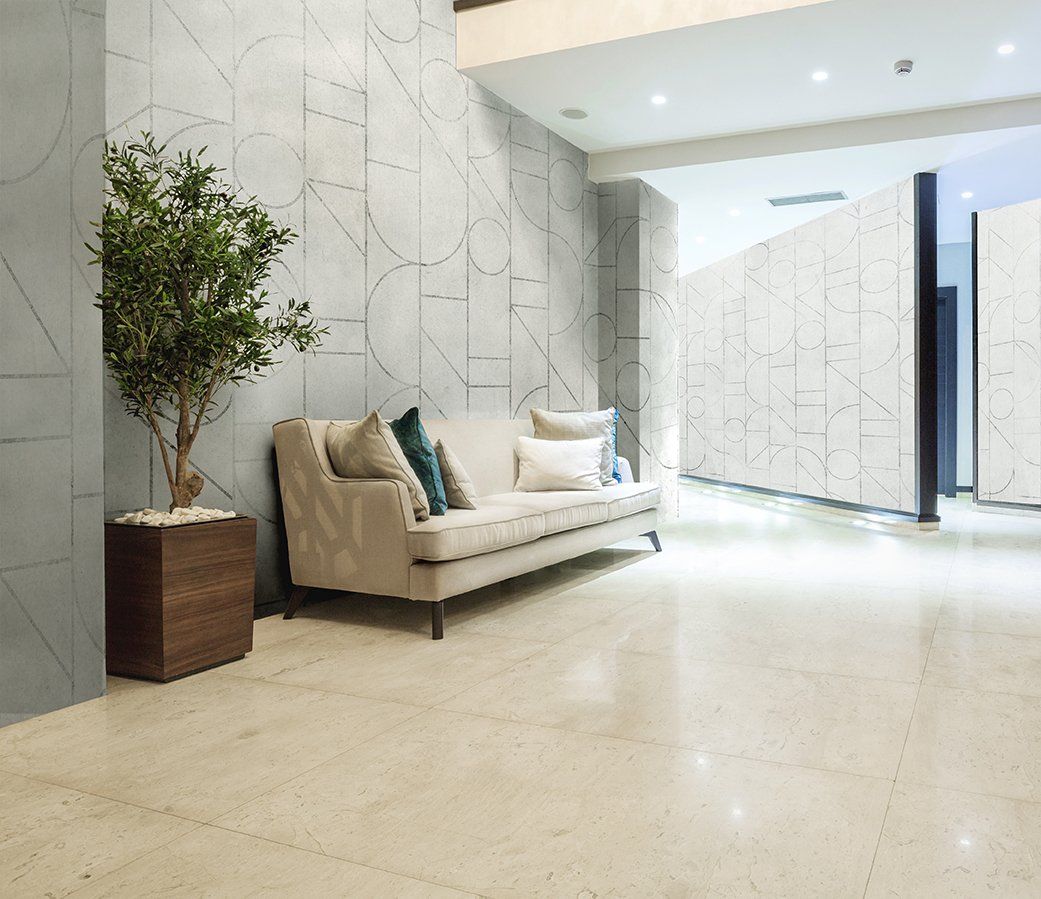 si rivolge al mercato Contract e HO.RE.CA. proponendo pattern dal gusto sia classico che moderno per decorare tutti gli spazi con grande passaggio di persone.